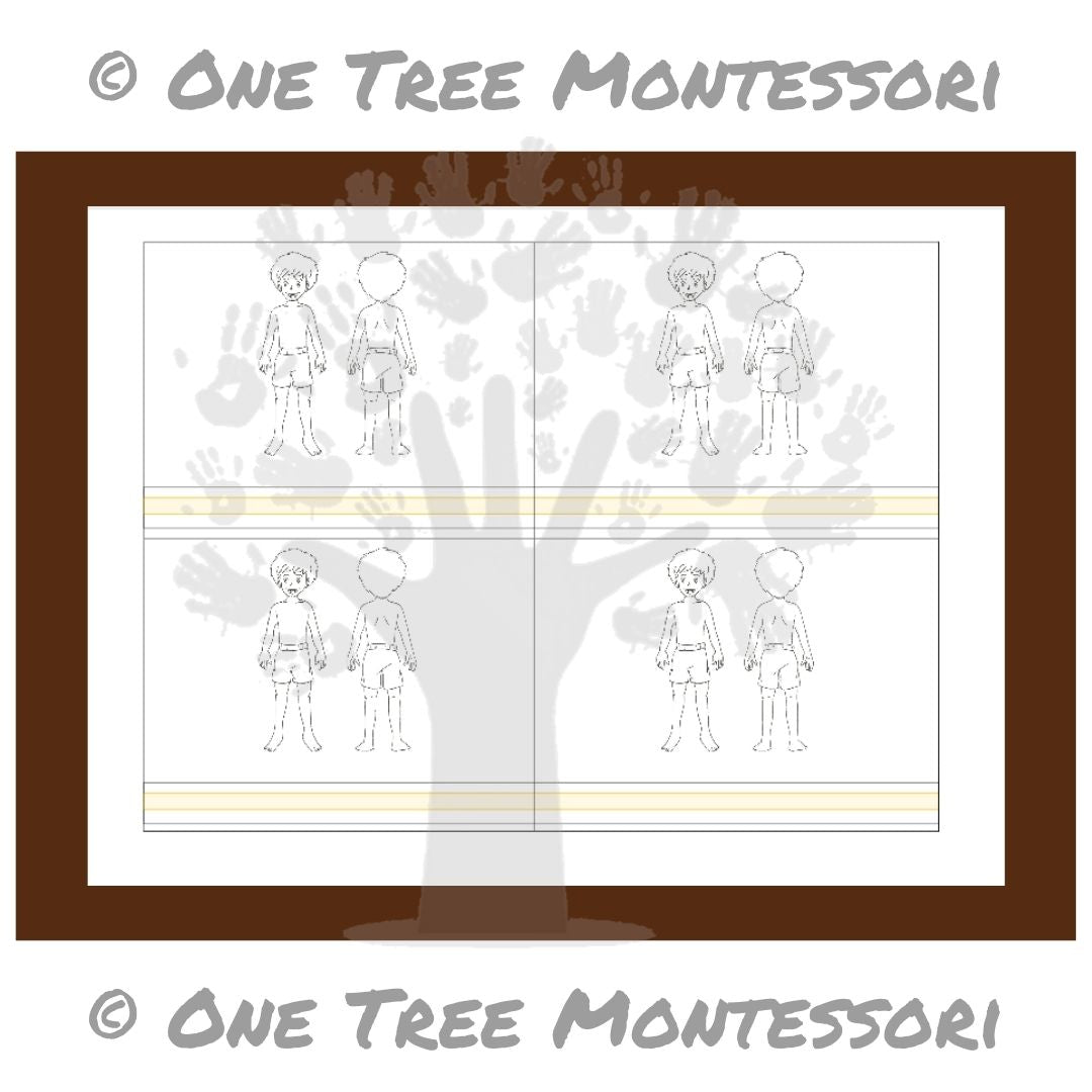 Digitaler PDF-Download von Strichzeichnungen für die Körperteile. Vier auf einer Seite.