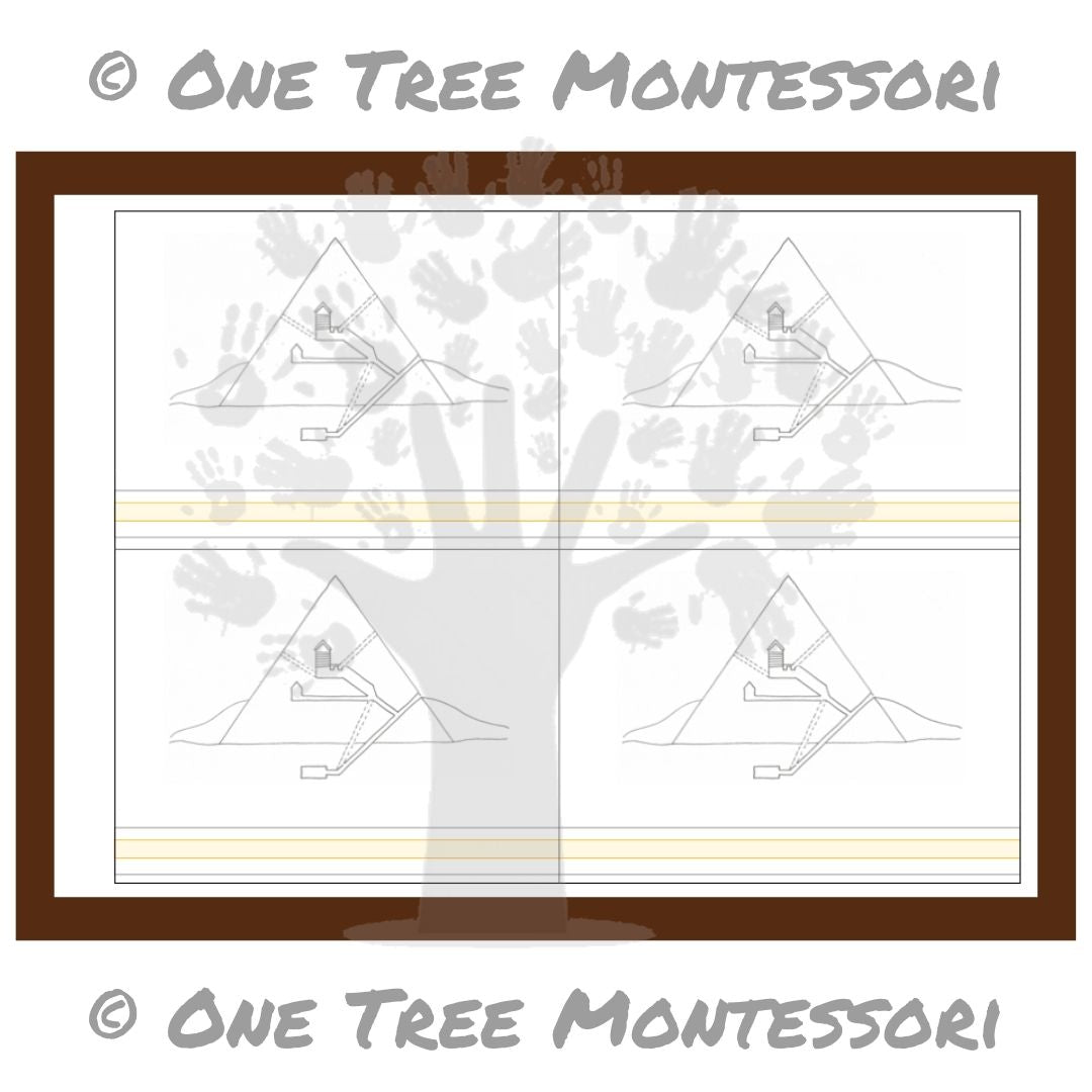 Digitaler PDF-Download von Strichzeichnungen für die Teile einer Pyramide. Vier auf einer Seite. Perfekt für das Studium des alten Ägypten.
