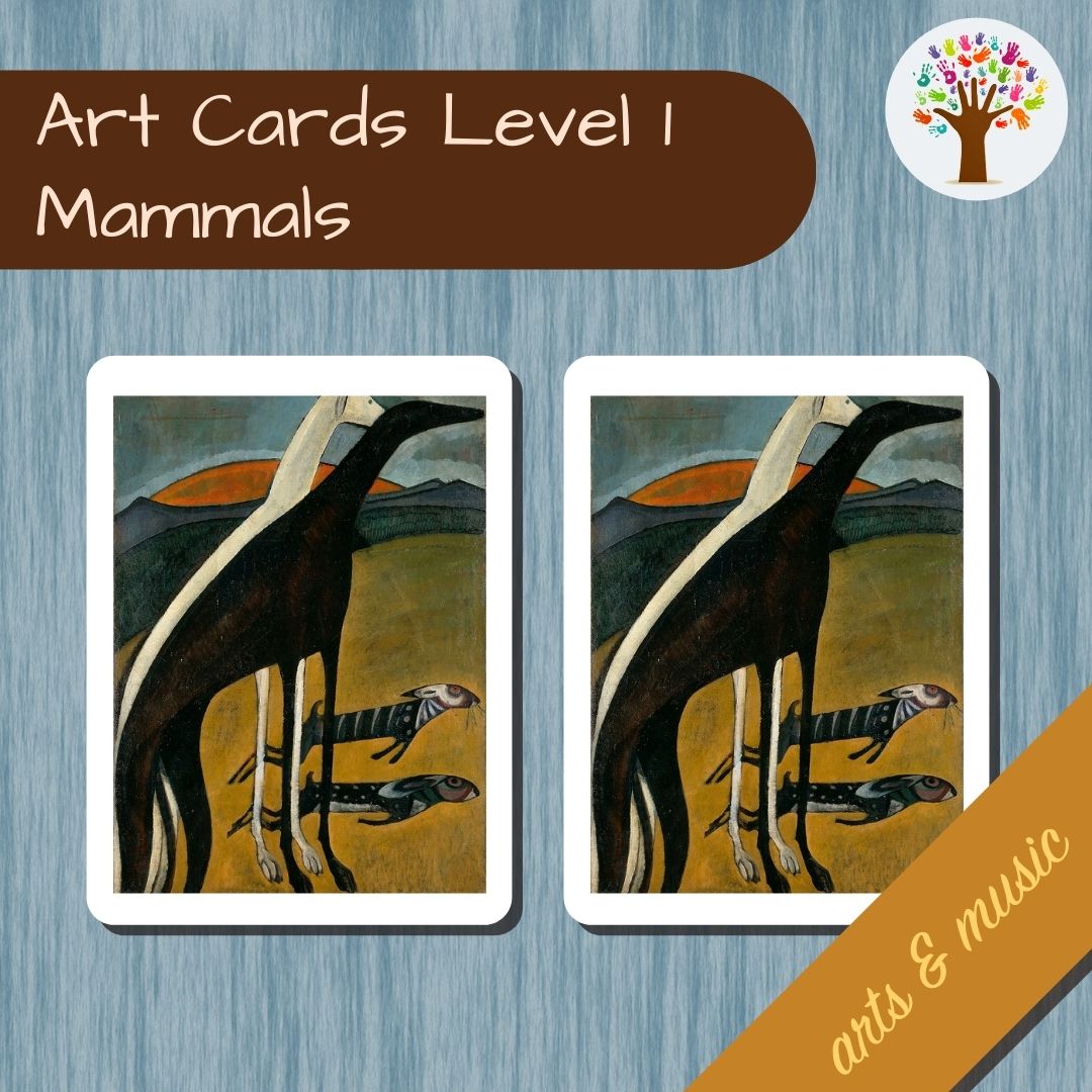Art cards are miniature representations of various artworks. The Mammals Art Cards (Level 1 - see below) feature 10 pairs of traditional and contemporary art about mammals.