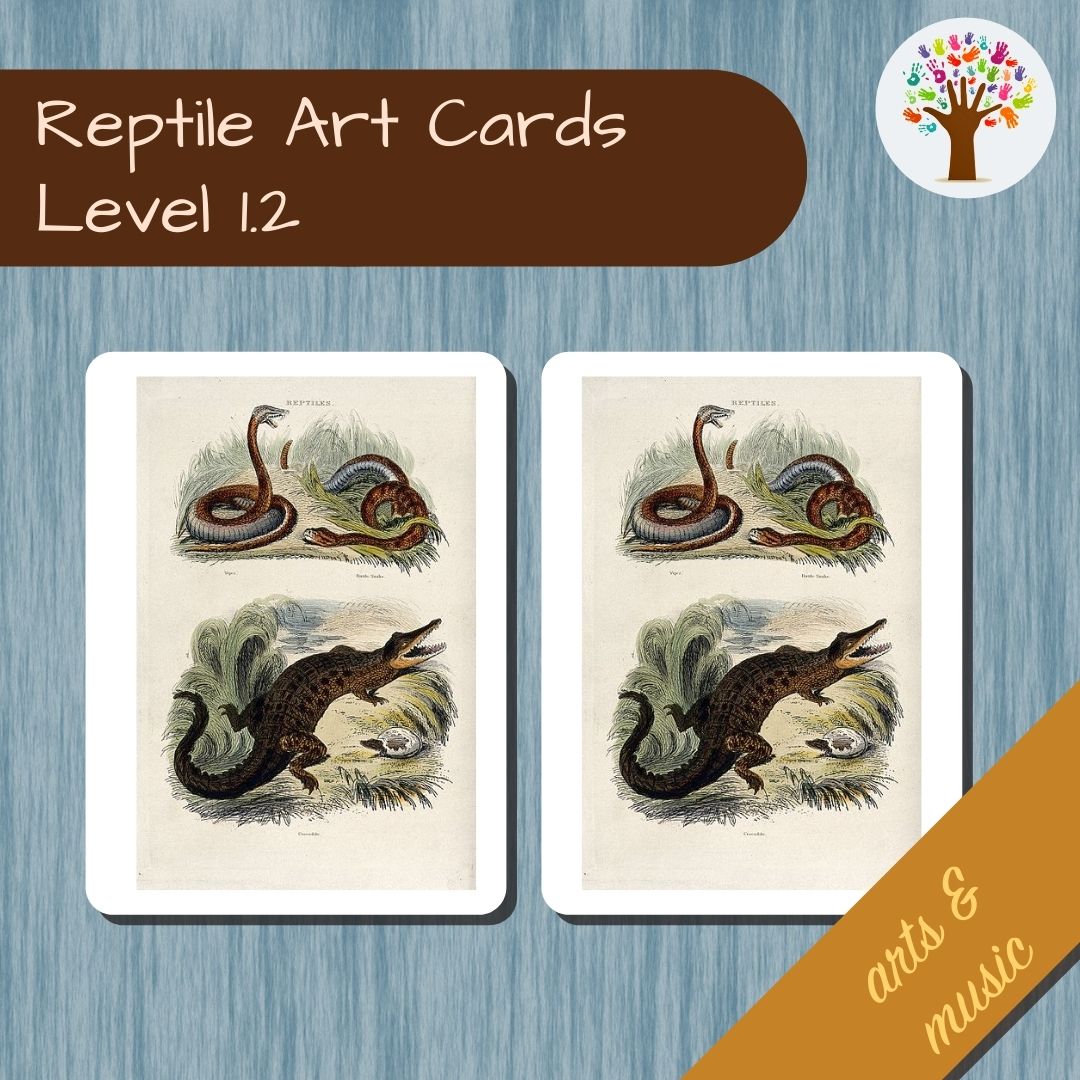 Art cards are miniature representations of various artworks. The Reptile Art Cards (Level 1 - see below) feature 10 pairs of traditional and contemporary reptile-themed art.