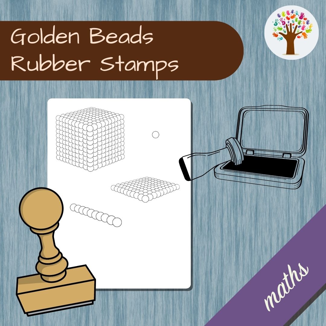 African-made rubber stamps of the Montessori Golden Beads. It's the perfect math extension for your classroom or home!