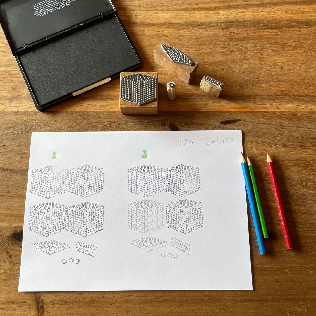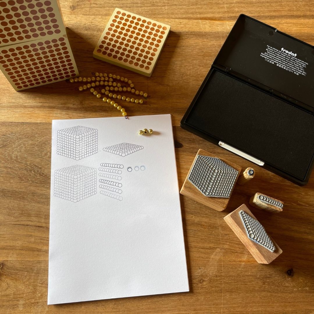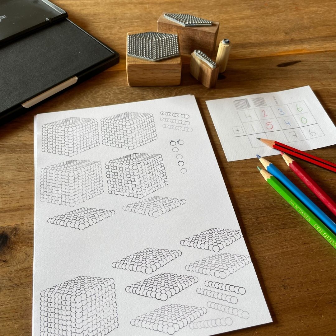 Traditionally, Montessori environments have only one of each material. With these stamps, you get an extra set of beads without betraying the purposefully limited equipment!