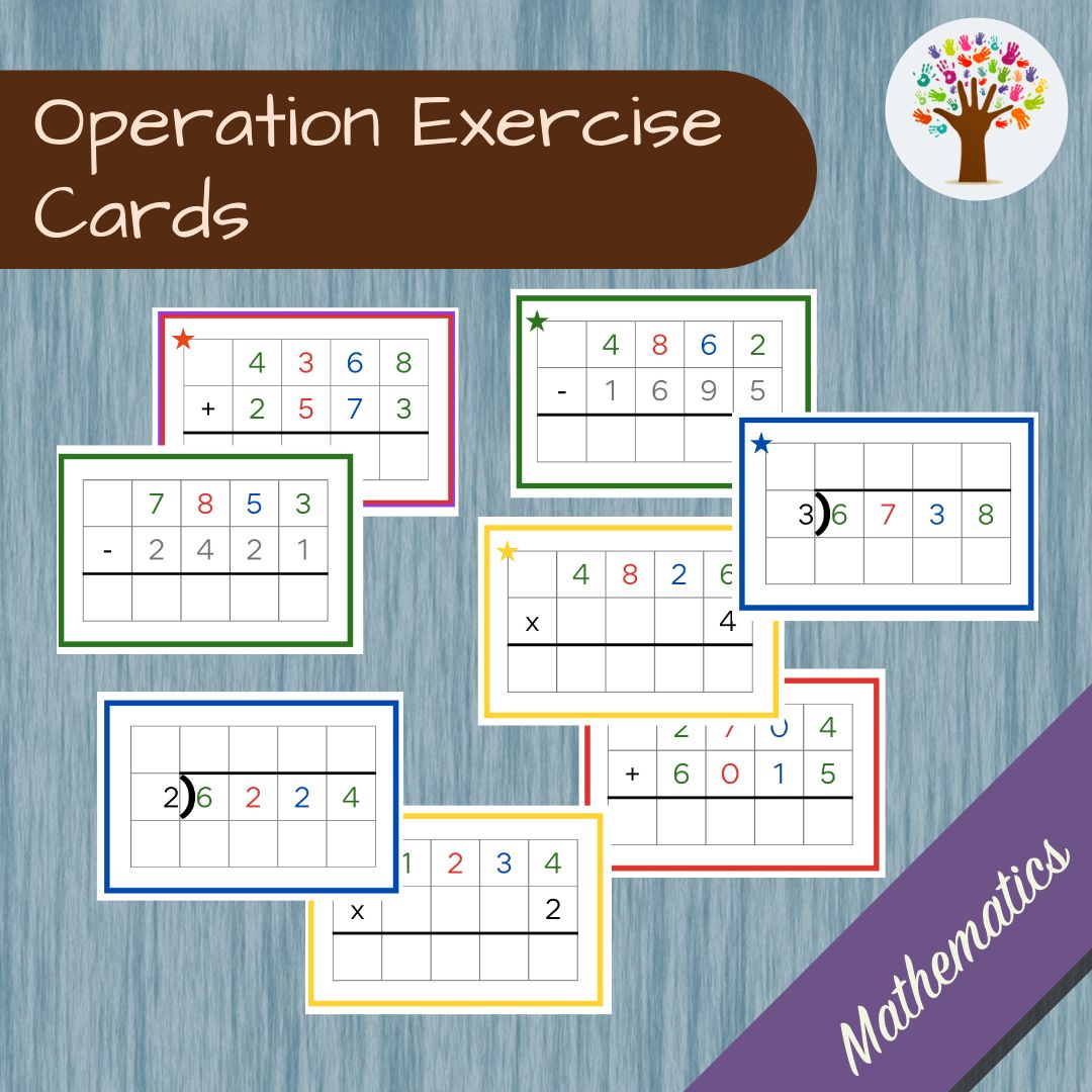This digital download PDF contains 48 static and dynamic operation problems for addition, multiplication, subtraction and division.