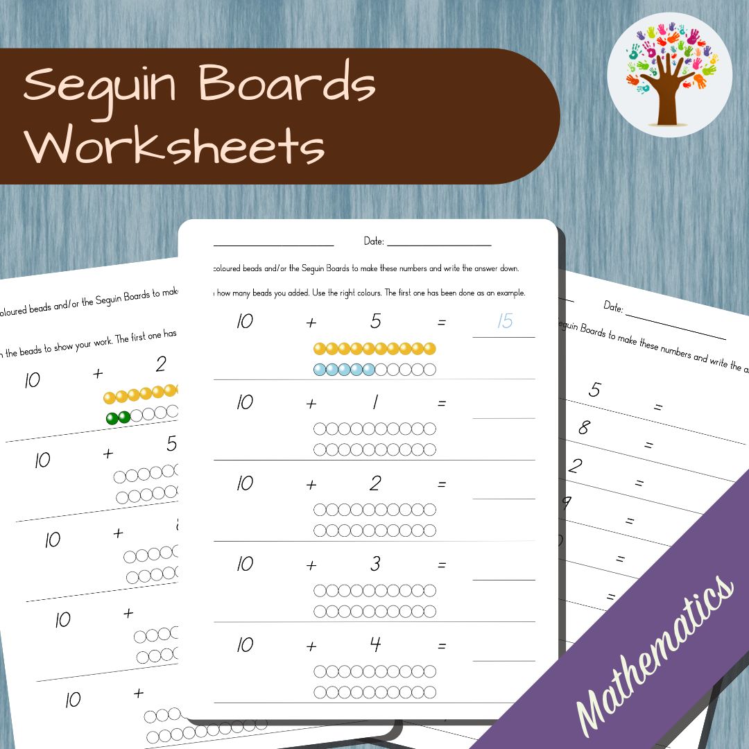 This digital download PDF includes 3 worksheets each for the Seguin Boards A (Teens) and B (Tens).