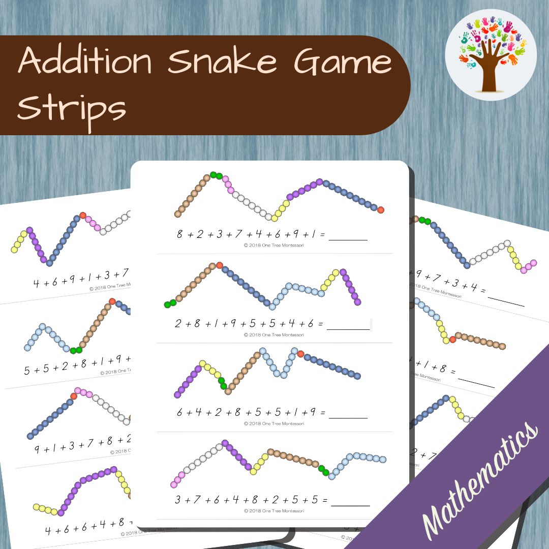 Containing both linear additions and the snakes with perfect tens and exchanging allows children to simply copy the snakes on a sensorial level or already solve the equation.